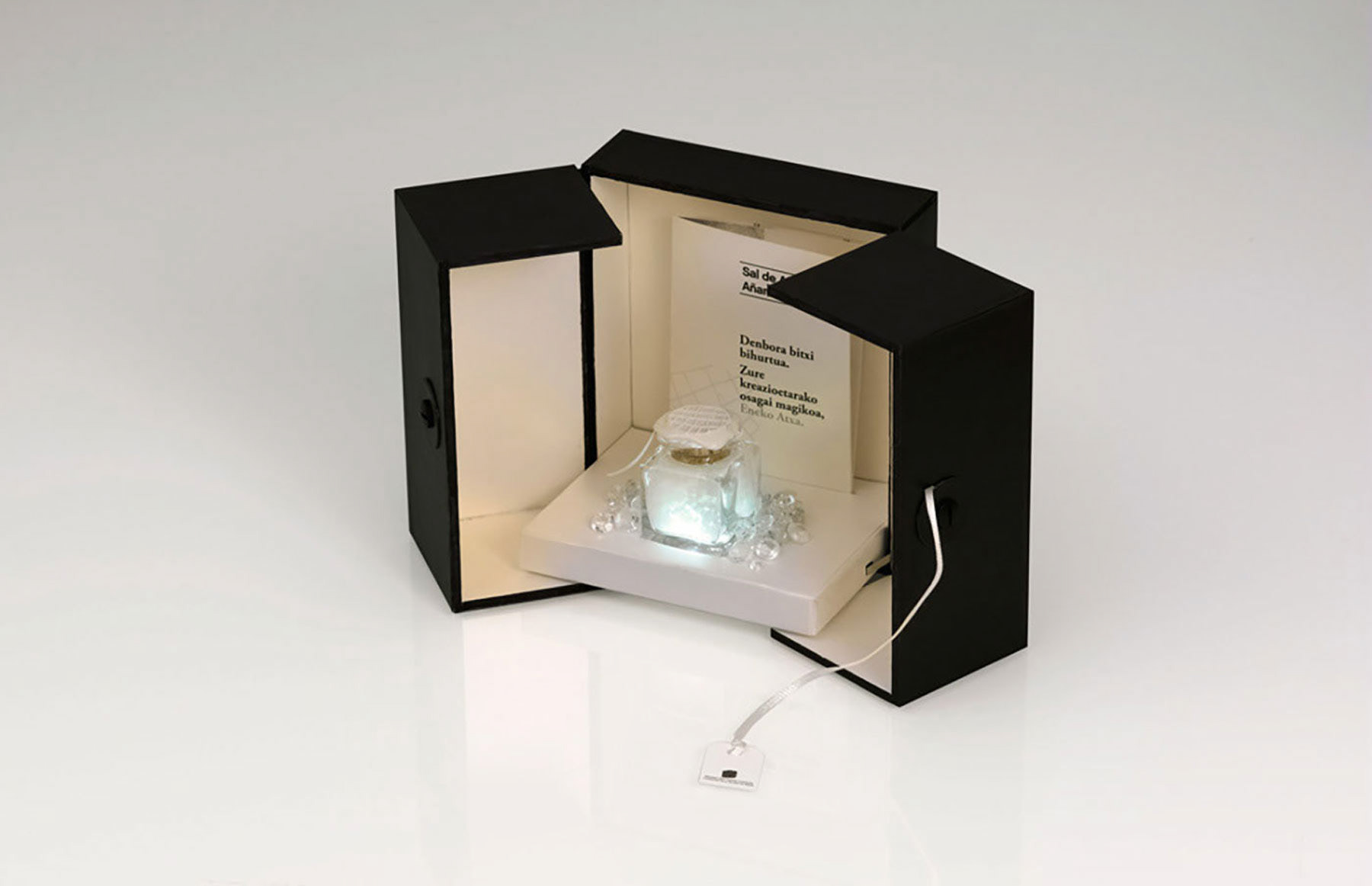La fundación Valle Salado de Añana quería retomar la relación con cocineros con estrella Michelín. La sal de Añana se encuentra en un enclave peculiar, una salina de interior con más de 6.000 años. Se propuso hacer un envío especial, presentando la sal del Valle Salado de Añana como un ingrediente de lujo, mágico, único,… una joya. Con esta premisa se creo un cofre, una edición especial, limitada, hecha a mano, única y personalizada para cada cocinero.